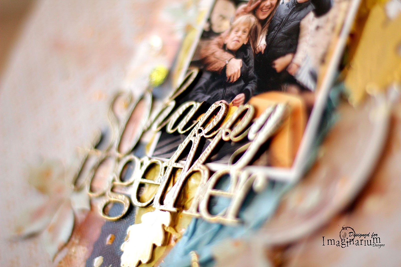 I would like to show you tree layouts from this autumn in my native town in Siberia. Those people are my friends and I made this projects as a gift. Also I grab them all together in sunny autumn day and made lots of beautiful pictures. All Imaginarium designs chipboards I covered with gold embossing powder.